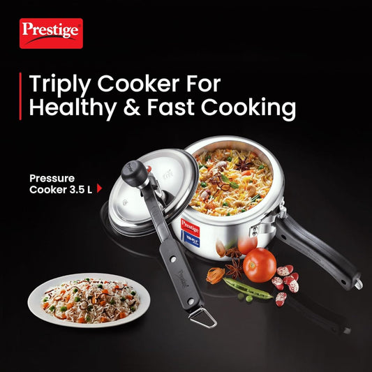 Prestige Triply Svachh Inner Lid, 3.5 Liter Pressure Cooker, Silver - 20720