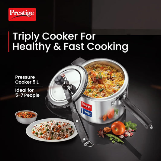 Prestige Triply Svachh Inner Lid, 5 Liter Pressure Cooker, Silver - 20715