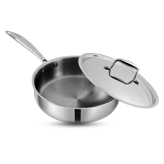 Vinod Platinum Triply SS Sautepan with SS Lid 2.6 Liter, 24 cm | Induction Friendly, Silver - PSTP24