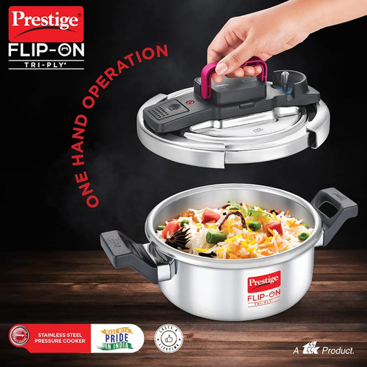 Prestige FLIP-ON TRI-PLY Stainless Steel 3 Liter Pressure Cooker with Glass Lid - 20708