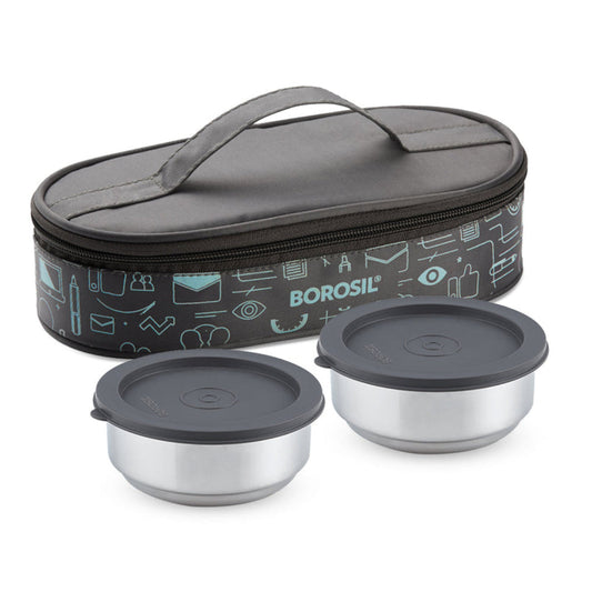 • Borosil Carryfresh Lunchbox, Set of 2, Flat (Medium) | 180ml