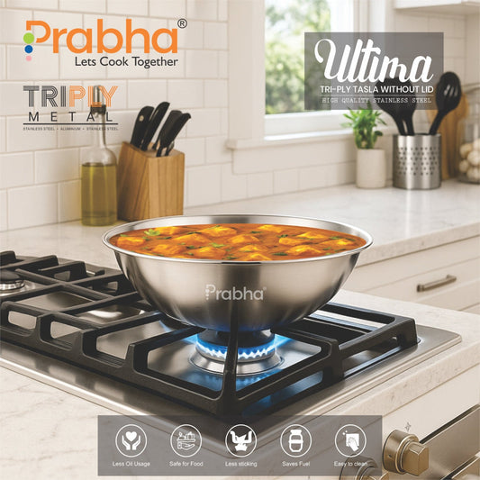 • Prabha Ultima Triply Stainless Steel Kadai with Lid Heavy Base