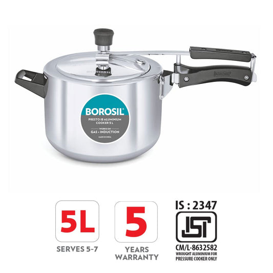 Borosil Presto Aluminum 5 Liter Inner Lid Pressure Cooker, Induction Base - CFPC5LAL03