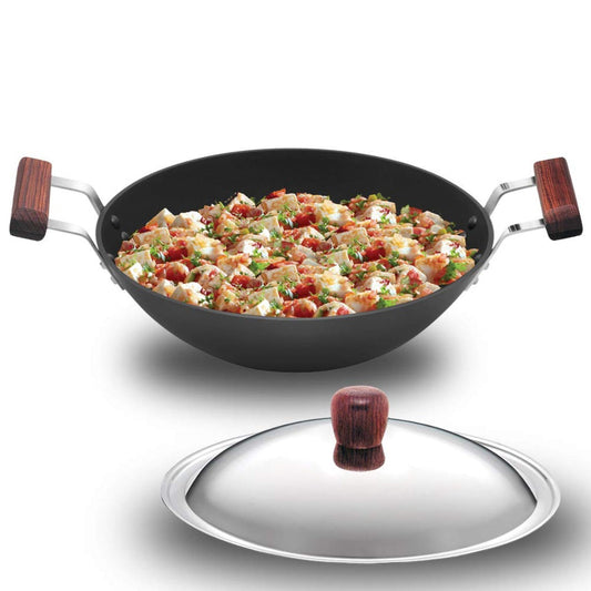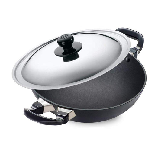 Futura Nonstick Deep Wok Pan Kadhai (Round Bottom) by Hawkins