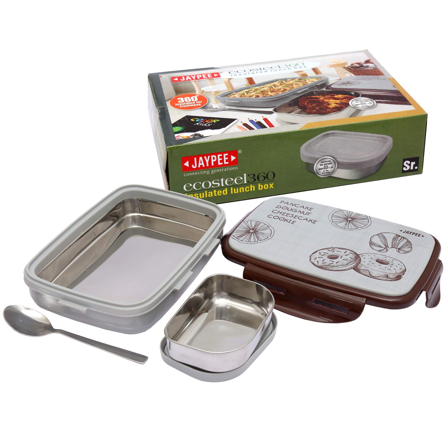 Jaypee Ecosteel Sr Grey 650 ml Stainless Steel Insulated Lunch Box for School & Office, Spoon, Airtight Leak-Proof, Tiffin Box for Kids